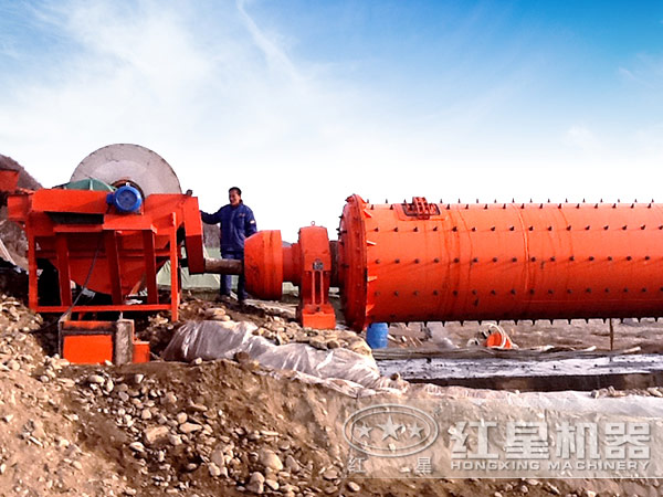 开采出来的方解石矿石现有鄂式破碎机进行初步破碎,破碎到合理粒度范围后的物料经由提升机均匀送到球磨机中,被球磨机对该物料进行粉碎和研磨。经球磨机研磨后的物料进入浮选机进行分级处理,分级处理过的物料因含水量较多,要经过浓缩机初步浓缩过程,才能在被烘干机烘干得到干燥的方解石成品。